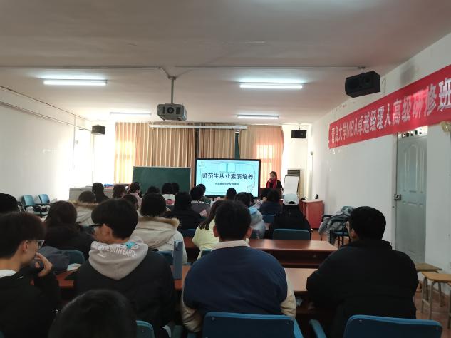 学姐讲解完毕后李老师也进行了总结和发言,再一次详细介绍了矫建悦学姐在校期间的所做所获,鼓励同学们敢闯敢拼,向矫建悦学姐学习,将来的某一天也会站在讲台上成为一名人民教师。