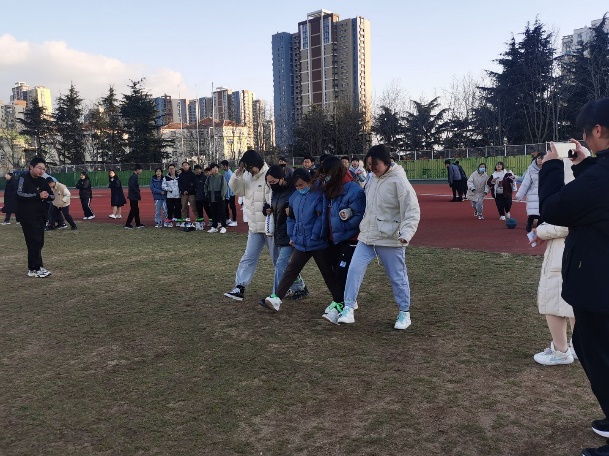 2020级在浮山校区西苑操场进行“五人六足”趣味接力赛。活动由数学与应用数学三班组织进行。