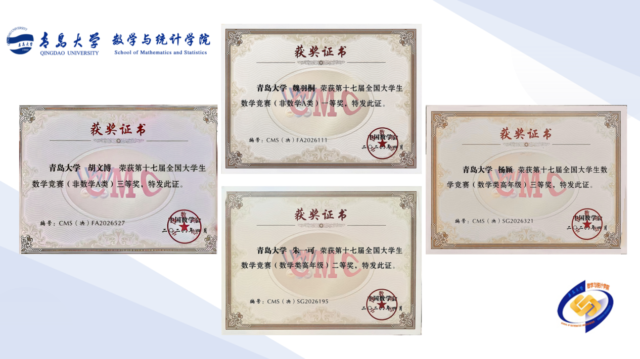 组建专业导师团队全方位提升学生竞赛能力。参赛学子潜心钻研、锐意进取,以严谨的数学思维与出色的临场表现,展现了青大学子的风采与实力。